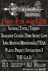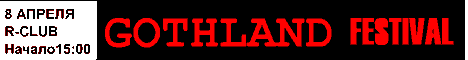 8 апреля (пятница) 2005 года в “Р-Клубе” состоится грандиозный "GOTHLAND FEST" - музыкальный фестиваль, организованный первым российским готическим журналом GOTHLAND.